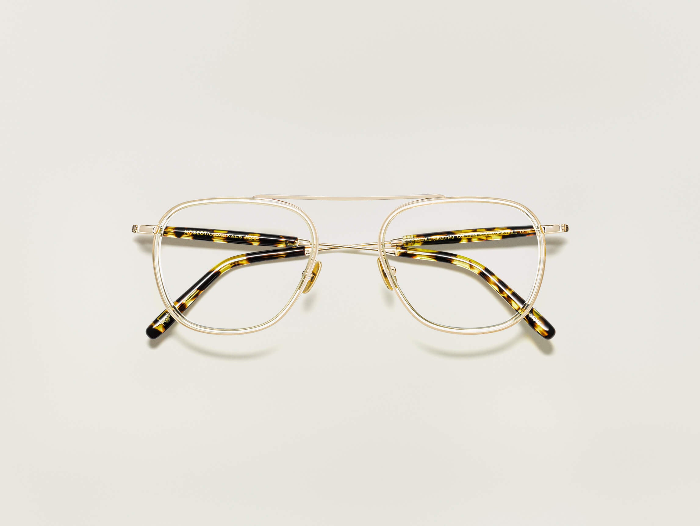 He wears The KORVA-TT in Light Grey/Silver in Platonic. This 70s-inspired frame is made with modern construction; the result is a thinner, sleeker, and more streamlined aviator. Try out The BJORN or The FANAGLE for a similar look!