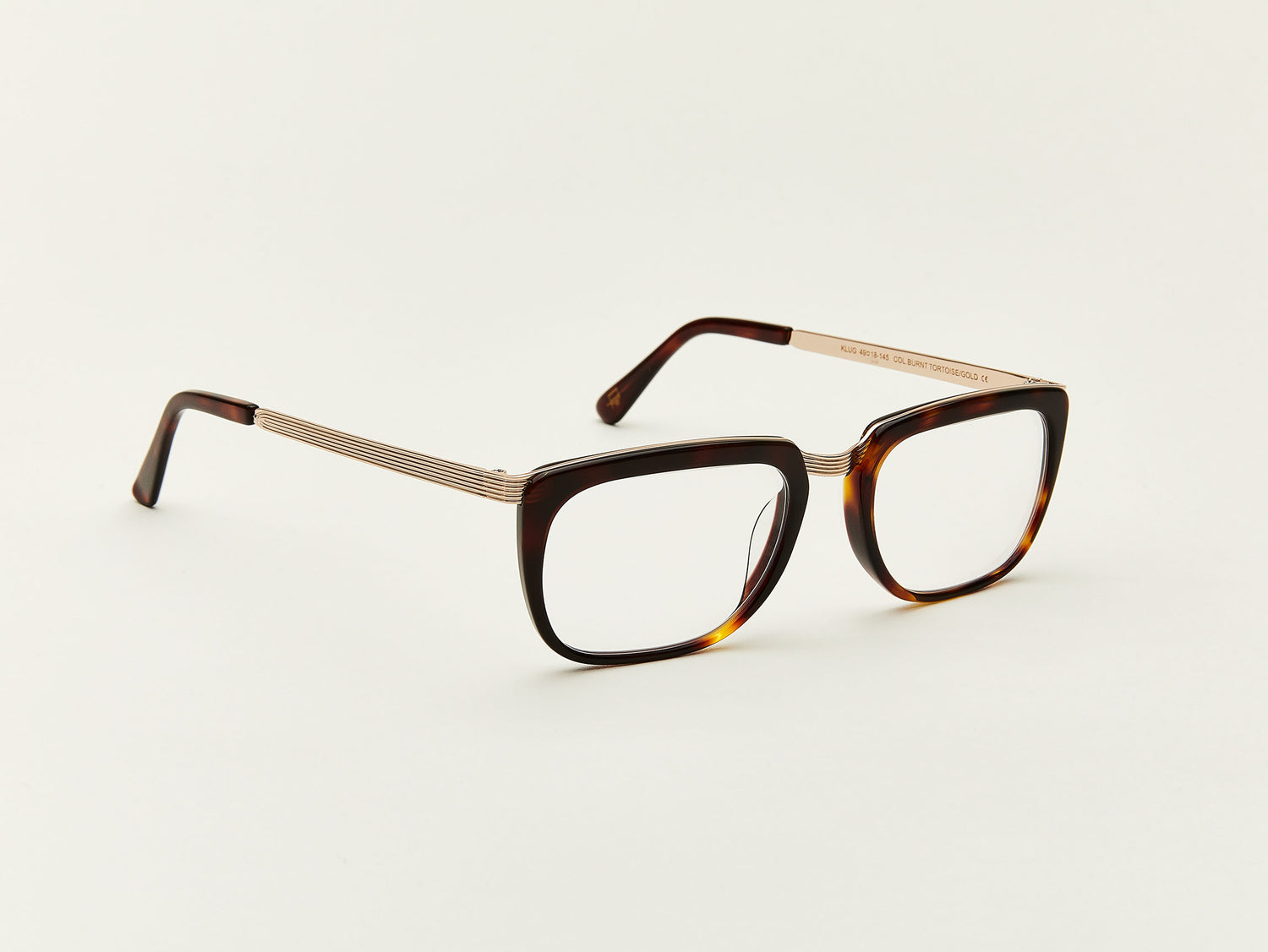With detailed skiving on its bridge and temples, and a sophisticated, rectangular design, you'd be smart to don the metal acetate KLUG, and bonus...you'll look smarter wearing it, too.