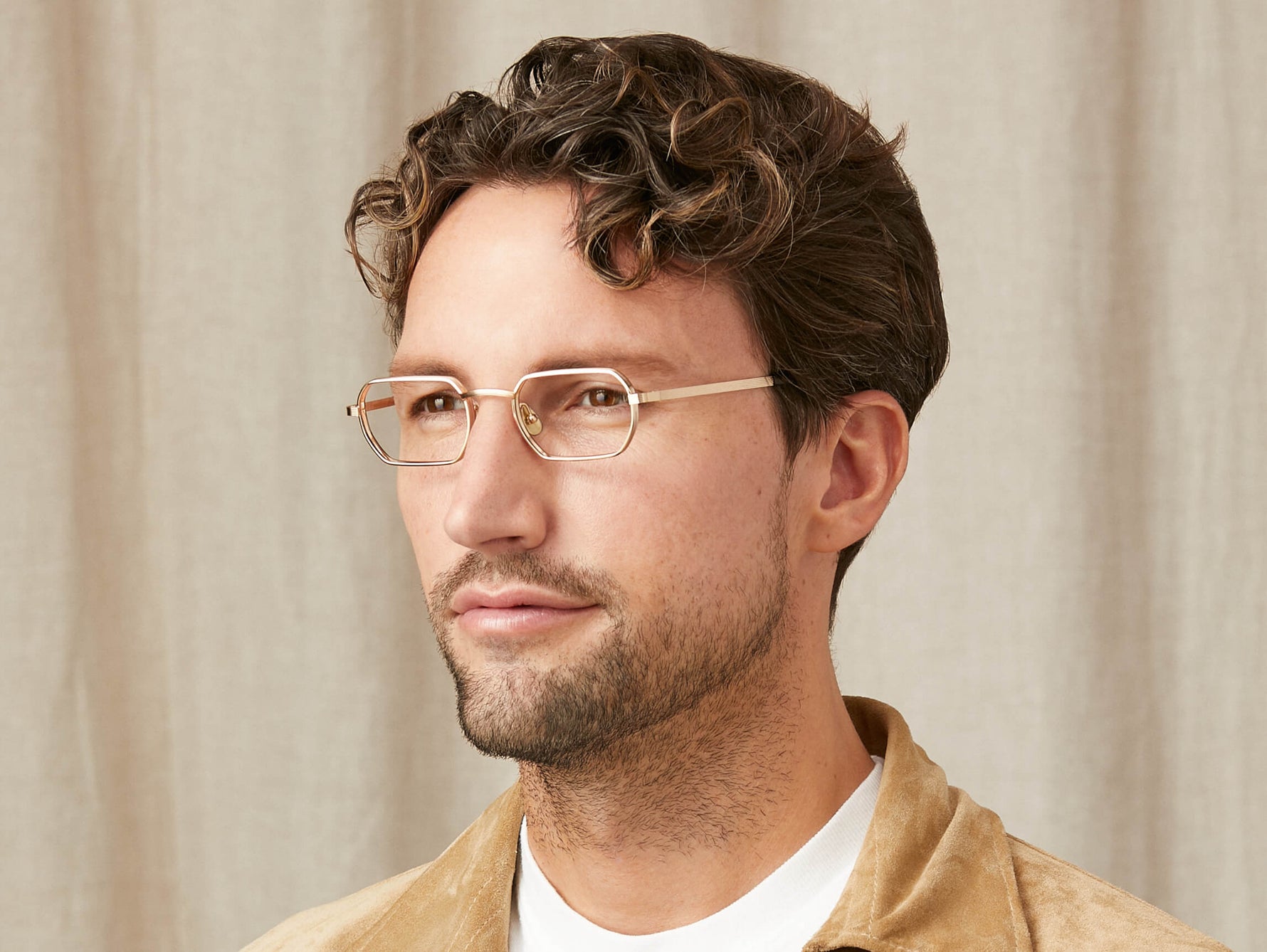 Model is wearing The SHMOOZ in size 48 in Gold