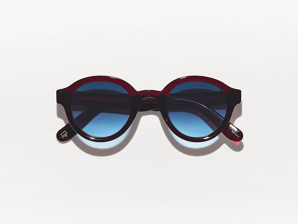 The GREPS SUN in Burgundy with Denim Blue Tinted Lenses
