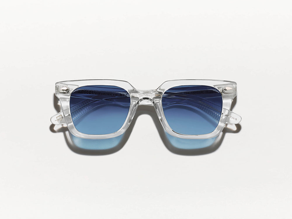 The GROBER SUN in Crystal with Denim Blue Tinted Lenses